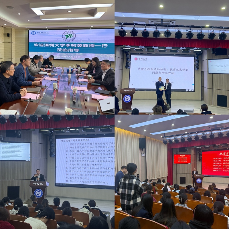 2025年11月24日下午,深圳大学李树英教授一行应邀来访教师教育学院,开展学术交流并作专题讲座。双方围绕人工智能时代师范教育转型与教育现象学实践探索展开深度对话。