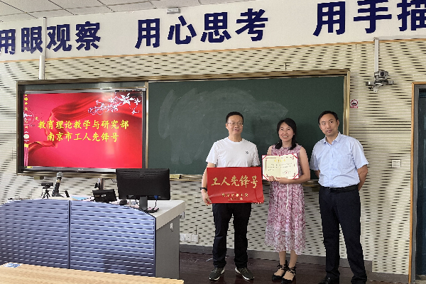 会上学校工会向我院教育理论教学与研究部颁发了南京市“工人先锋岗”的证书和奖牌。