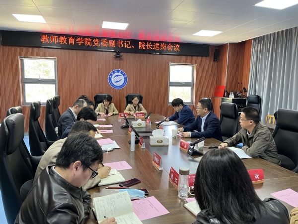 2022年10月26日上午,学院在叔愚楼221召开党委副书记、院长张济洲同志送岗会议。校党委常委副校长王本余、党委组织部部长(党校副校长)、党委统战部部长于扬出席会议;教师教育学院班子全体成员、教研室主任、支部书记、科室主任和教师代表参加了会议。会议由学院党委张洁书记主持。